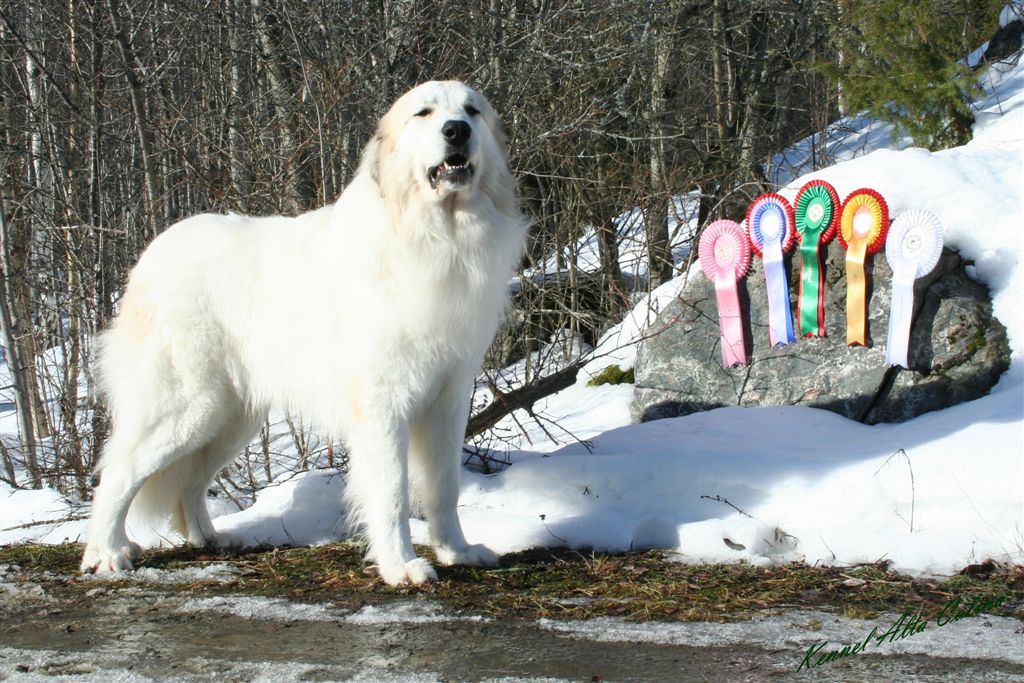 Alta Colina's Damenes Jens "Jergan" Martin, father of both Jergan and Celice became Best Pyrenean Mountaindog 2005 in Norway just like he did in 2003. In 2004 he was 3e Best Pyrenean Mountaindog of Norway. Cubilon's Hann-Hund Hommage is owned by Hilde Stenstad. She also posesses Alta Colina's Don Diablo "Ruben", a litter brother. You can find pictures of all these dogs in the photogallery