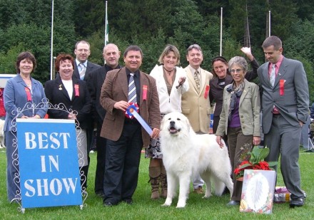 Grandma of Celice and also Great Grandma of Caitlin, Beachbear's Digitalis Purpurea of kennel Alta Colina Best Bitch and 3 BIS Veteran! On the show at Bjerke, Norway where 23 grown up Pyrs (10m/13b) were entered, she was choosen by judge Mr. H. v.d. Berg (NL) as Best bitch in spite off her age of 11 years!!