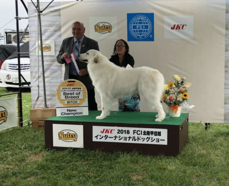 19-09-2016 MacThree's Omayra heeft haar eerste show in Kihryuh, Japan gelopen; 1 Uitmuntend, CAC en Beste van het Ras! Eigenaresse en handler: Toshiko Shigeno, kennel "Merveilleux Fides", Japan